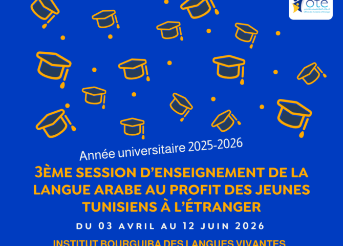 Dans le cadre de la mise en œuvre des programmes culturels et éducatifs au profit des nouvelleu titre de l’année universitaire 2025-2026, destinée spécialement aux étudiants et non-étudiants tunisiens résidant à l’étranger, et ce en partenariat avec l’Institut Bourguiba des Langues Vivantes.s générations de l’émigration, l’Office des Tunisiens à l’Étranger organise, du 03 avril au […]